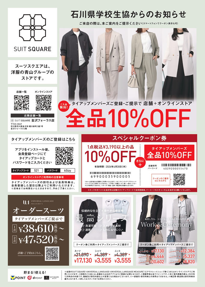 Copyright (c) 石川県学校生活協同組合 All Rights Reserved.