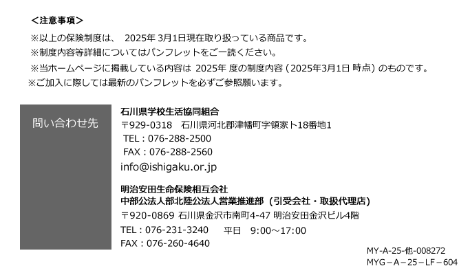 石川県学校生活協同組合では、組合員の福利厚生事業の一環として、各種保険制度を導入しています。